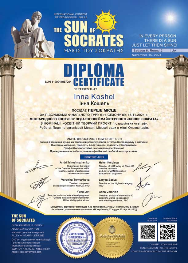 Номер диплому-сертифікату: SUN 1120241967204