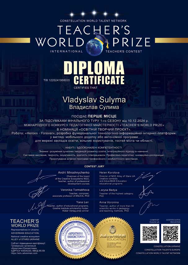 Отримувач: Владислав Сулима